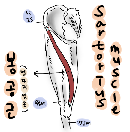 봉공근(넙다리 빗근, Sartorius muscle)이란?
